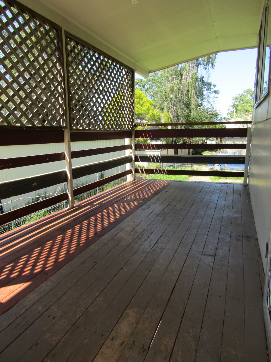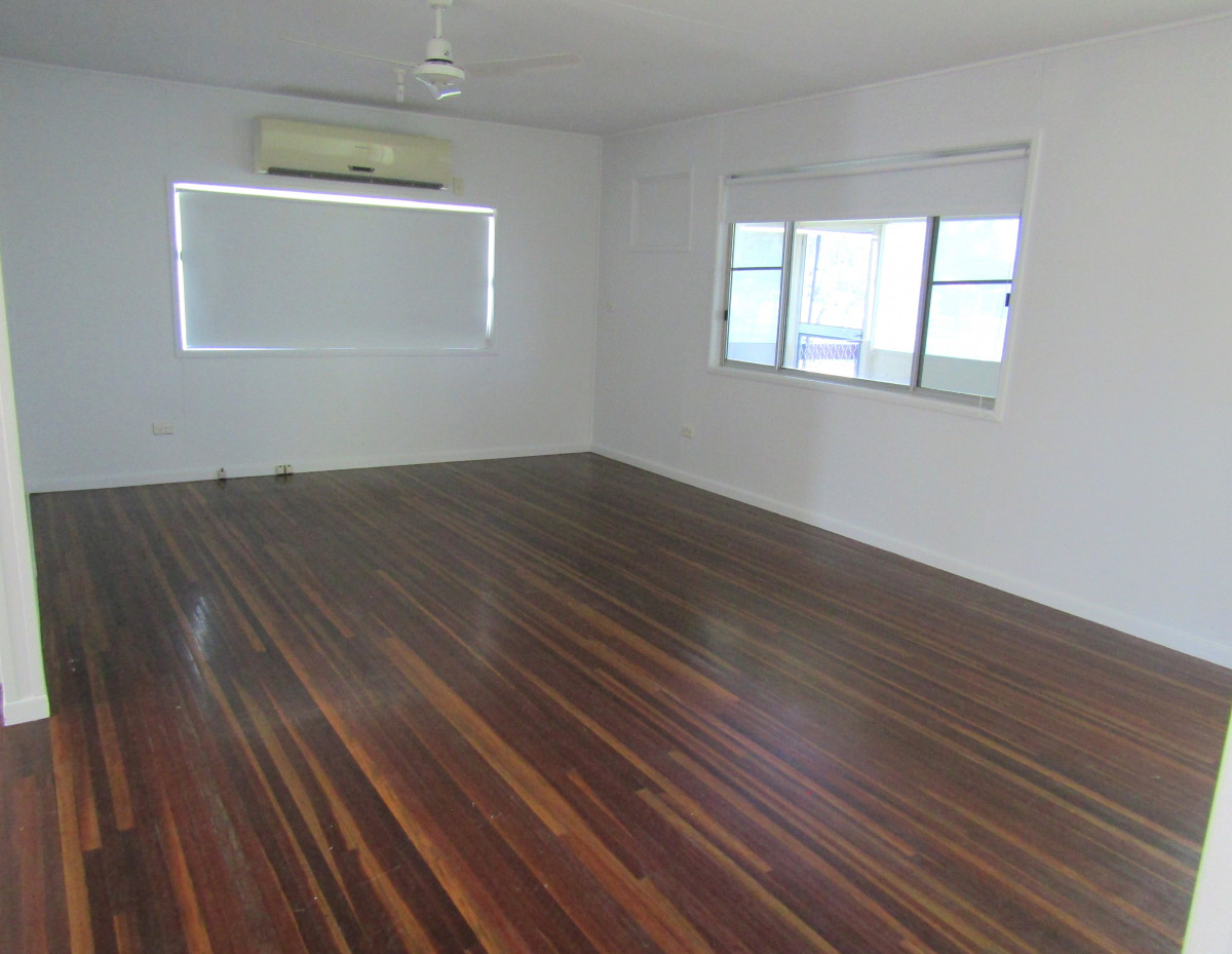 Perfect location with primary and high school close by, day care centre and PCYC. Upon entry you are impressed by the enclosed front verandah, perfect for relaxing on, which opens into the large air conditioned living area. Extending through to excellent dining space with kitchen adjacent this family friendly area appears to go on and on. The beautiful timber flooring accentuates the spaciousness of the living area to perfection. The older style kitchen has excellent bench and cupboard space including display cabinet over the servery area, pantry and excellent space for refrigerator. The bathroom makes a statement with newly installed vanity unit. Boasting separate shower to the bath, the toilet is located nearby and separate for convenience. Easy care vinyl flooring with laminate panelling for that retro point of difference. The main bedroom has built-in wardrobe with ceiling fans, air conditioning and carpet flooring to all bedrooms. Refurbishment includes paintwork, vanity unit, blinds and curtains upstairs showcasing the care and attention given to these areas. Underneath the home is laundry area, enclosed room beside, secure parking for two cars to complete the picture. Situated on a corner block, with excellent access through double gates to the side of the yard, this home has vacant possession or great investment opportunity. Situated at the northern end of Blackwater with Aquatic Centre, leash free dog park, sporting grounds a few streets over.
