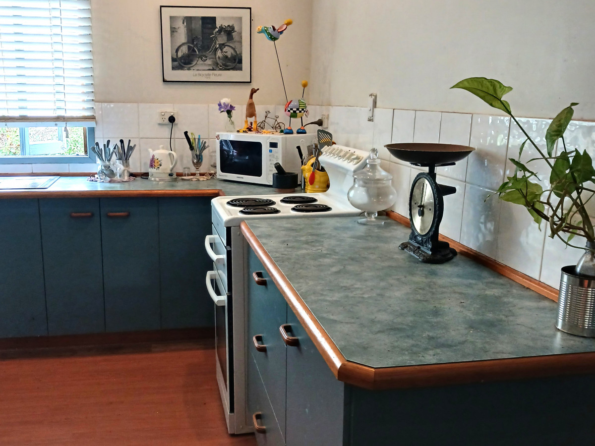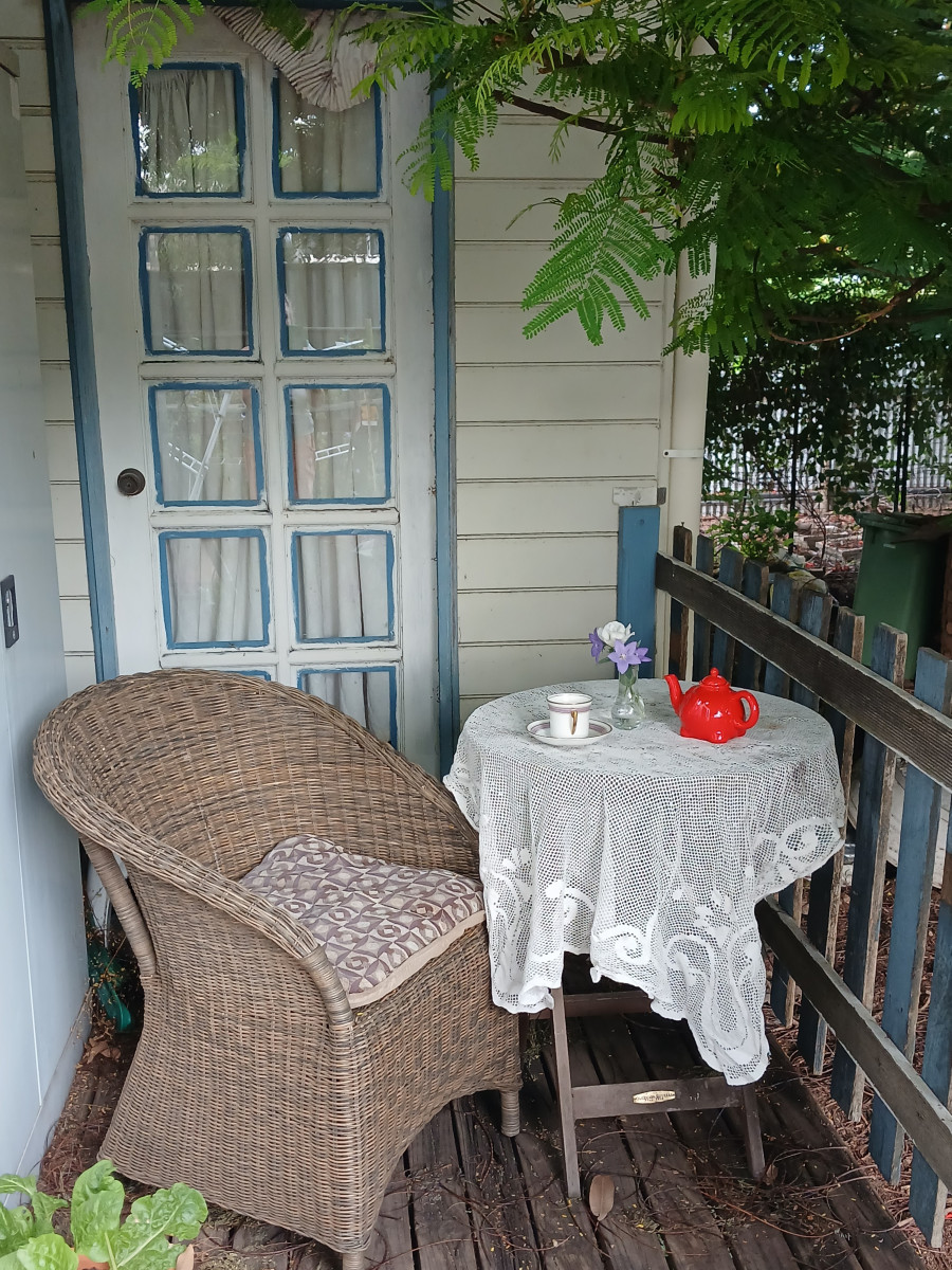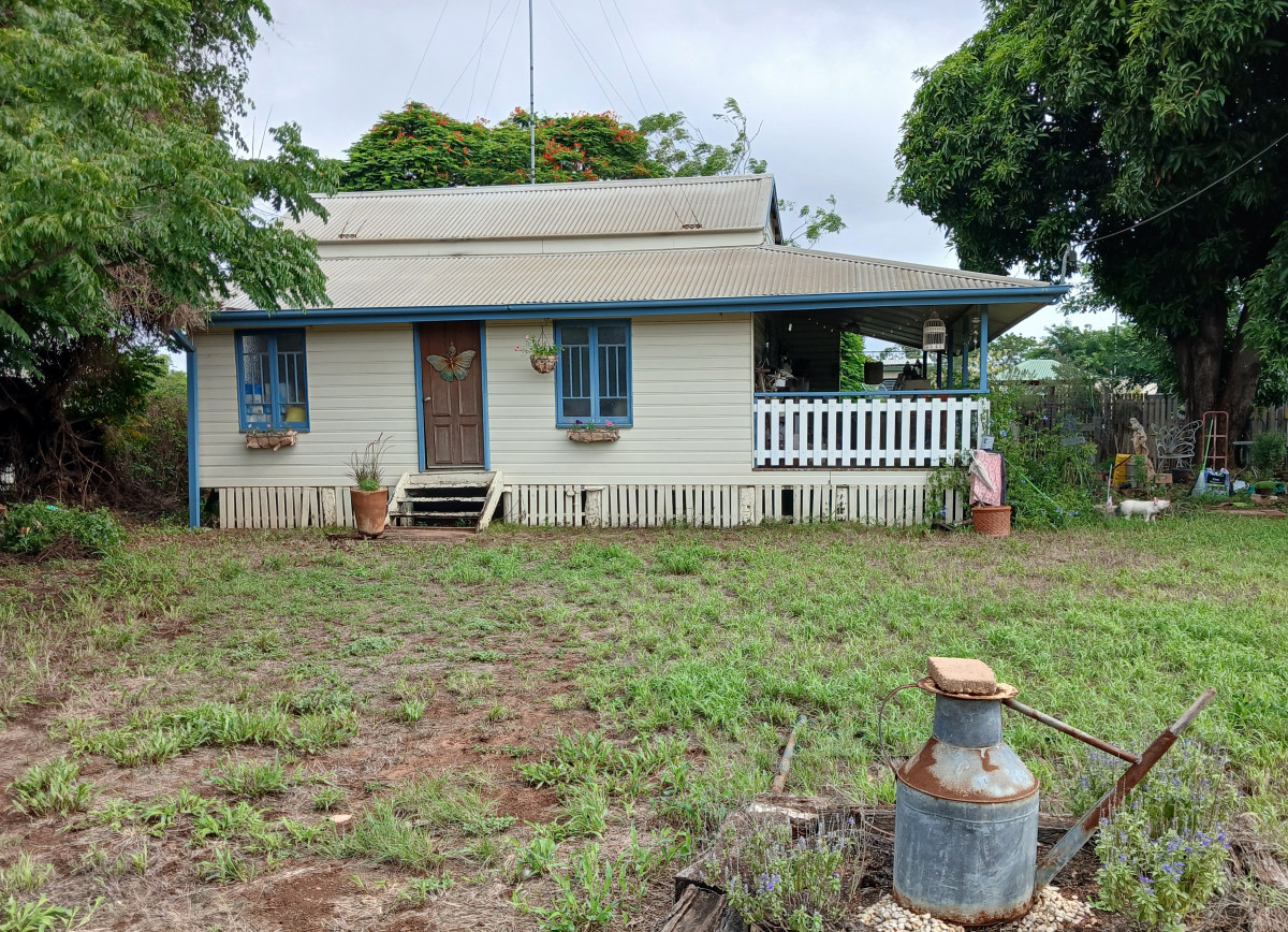 Western side of the front yard has two mature Golden Rain trees to shade the corner and side of house. Eastern side of house is sheltered and shaded by two mature decades old mango trees. Backyard features white cedar tree + mature decades old Poinciana tree shading the brick bbq plus yard area. House is fenced back and sides. The kitchen boasts Island bench, good cupboard and bench space, double sink, upright electric stove with timber look planking throughout the house with tiled flooring to complete the wet areas. The kitchen dining area has split system air conditioning. French doors from the dining room open onto east facing verandah. From the kitchen/dining you enter the lounge room through double timber door frame. Master bedroom includes box air conditioner, ceiling fan, mirror front double wardrobe and access to the bathroom and also through beautiful cottage door to the back verandah area. Second bedroom opens to the lounge room. Bathroom has two way entry, into the master bedroom or near back door access and across to the separate toilet. The bathroom features space saving sliding pocket doors, linen cupboard and four drawer two door vanity unit, with shower over the bath to finish. Laundry is conveniently located near the bathroom. Front verandah/ sleepout has double window with louvres on western side to let the breeze flow through. Office: single entry door from verandah + double window. Vacant possession.