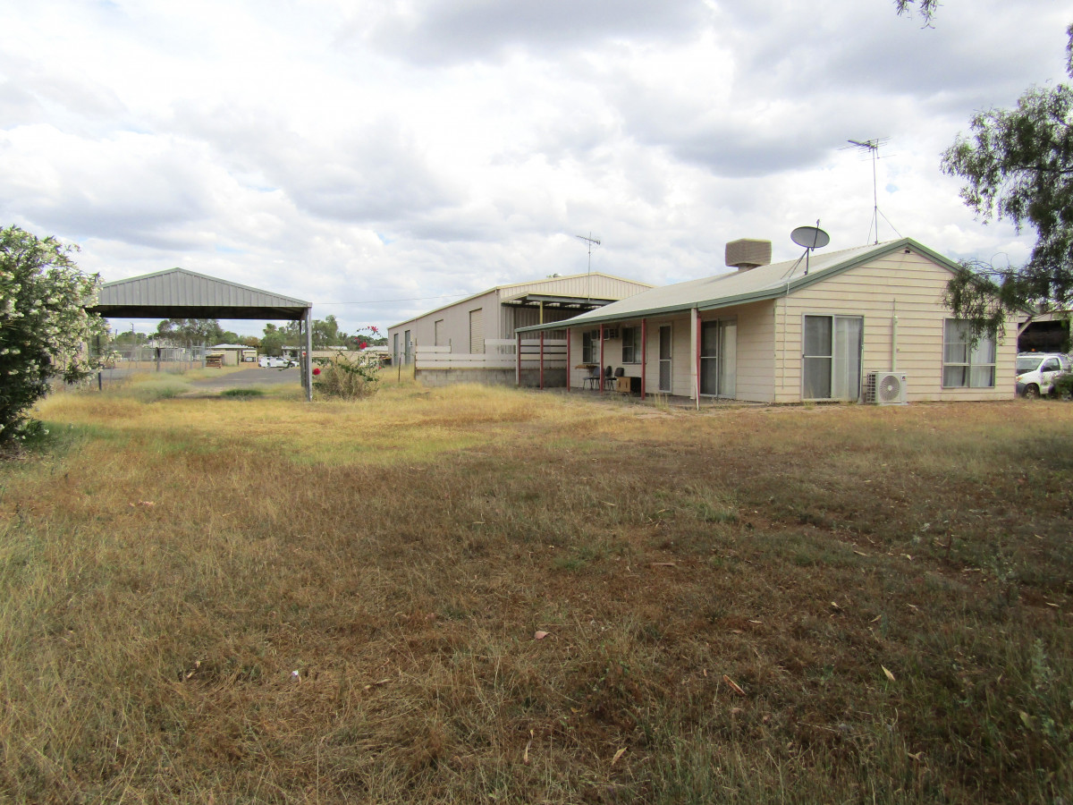 Situated in the industrial area of Blackwater this prime real estate location site is on the town side of the railway line. The four roller door shed is split in to workshop areas plus rooms and amenities including showers, toilets and kitchenette area. Excellent on site and good off street parking to take care of client parking requirements. At the back of the block sits a three bedroom one bath contemporary style home. Upon entering the home, the spacious air conditioned lounge room flows through to good sized dining area with kitchen to the side. Excellent cupboard space including ones overhead plus large pantry takes care of storage needs. The bathroom has a separate shower to the plunge bath with large vanity unit to one side and mirror over. The toilet is separate to the bathroom and just off the laundry area. Box air conditioning to the three bedrooms completes inside. The large cemented area to the front of the home is perfect for relaxing on or entertaining. The large grassed area makes this house a home. The shed includes four office rooms plus shower and toilet, plus two office rooms, shower and toilet plus kitchenette area. With a double carport plus the huge shed storage and parking is well taken care of.