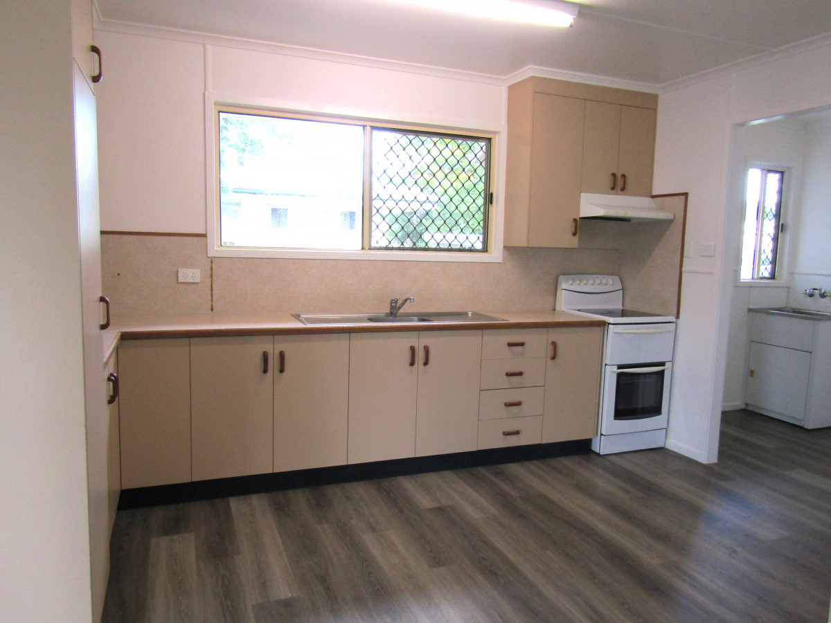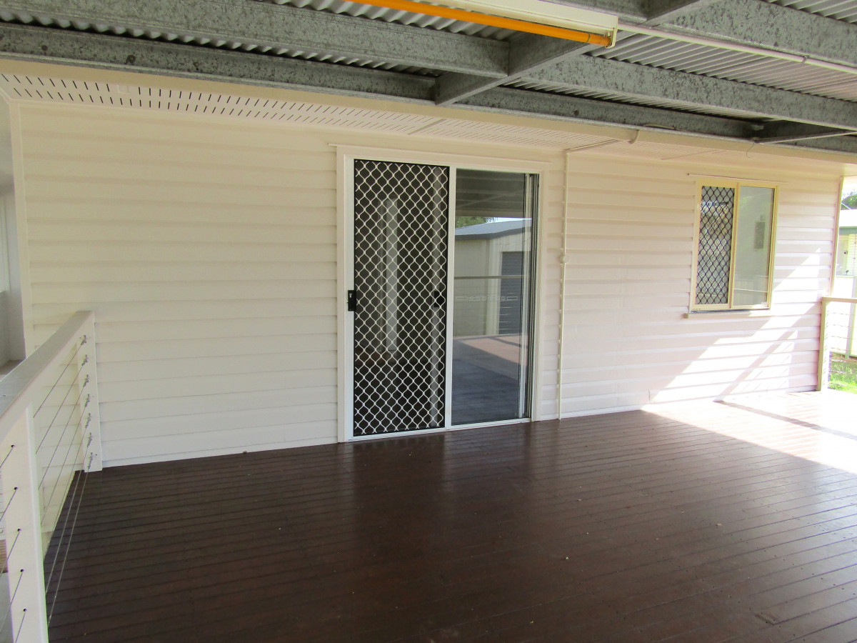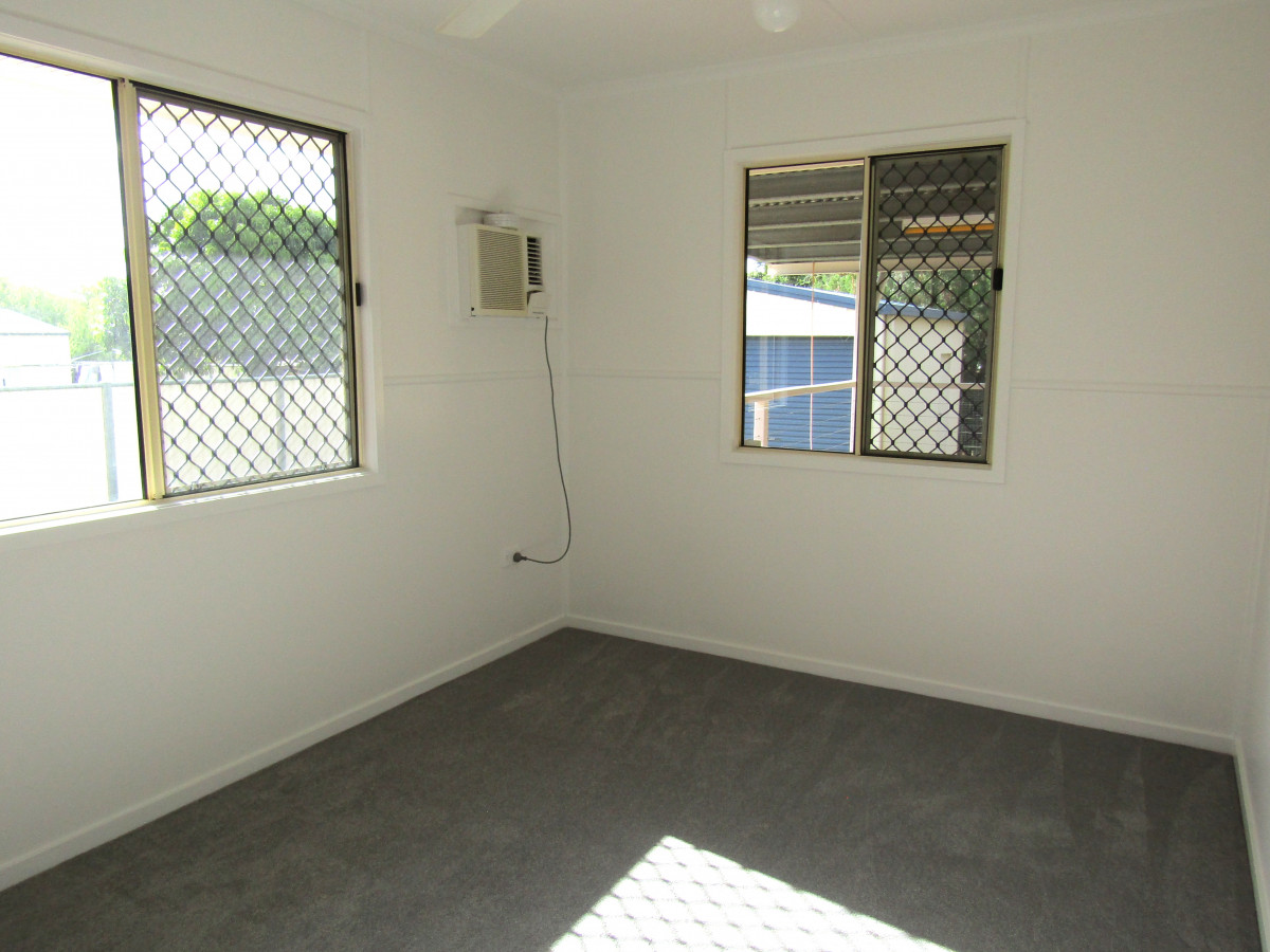 Newly renovated this immaculate low set would suit the first home buyer, retiree, an investor wanting a home without the hard work. The expansive kitchen has excellent storage including cupboards overhead, good bench space, upright stove, microwave nook and good dining space further enhanced by the impressive deck area. The separate lounge room complete with air conditioning and ceiling fan cooling is well taken care of. New carpet to the air conditioned bedrooms with ceiling fans to complete. Immaculate in white the bathroom with bath / shower, modern vanity unit with large mirror over further enhancing this light and bright area, linen cupboard for storage and contrast tiled flooring to set this area off to perfection. Toilet is separate for convenience and located nearby. Set on 708 sq m block the internal laundry gives ramp access to the fully fenced backyard with colorbond fencing to one side. DLUG with privacy door and car accommodation to the side of the home completes the picture at this family home. Location is an added bonus with shops a few streets away plus a primary school. Bank, service station, council chambers, two parks.